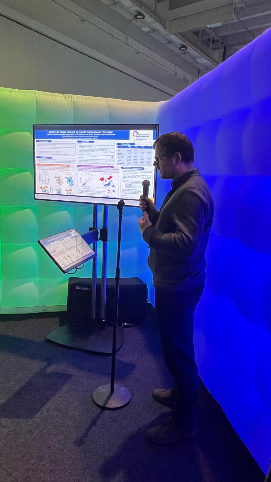 Das Poster von Dr. Andreas Lehmann, Dr. Renate Kirschner-Schwabe und Dr. Constanze Schneider zu „Effects of travel distance on cancer diagnosis and treatment – a spatial analysis across the federal states of Brandenburg and Berlin, Germany using real world data“ – präsentiert von Andreas Lehman, stellt dar, wie die Entfernung zum nächsten Behandlungsort die Diagnostik und Behandlung von Krebspatienten in Berlin und Brandenburg beeinflusst. Hierbei werden real-world Daten verwendet, um deren Auswirkungen auf die Gesundheitsversorgung aufzuzeigen. Beide Poster thematisieren wichtige Aspekte der Krebsversorgung und -forschung in Berlin und Brandenburg, von der epidemiologischen Analyse bis hin zu geographischen Faktoren, die den Zugang zu Behandlungen beeinflussen können.